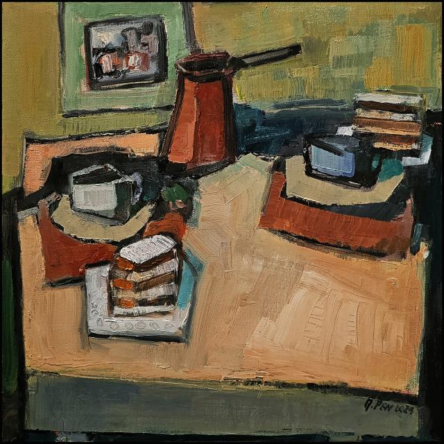 TURKISH COFFEE AND CAKE, Oil on Canvas 50 x 50 cm; 2025; Nr.: 25.21